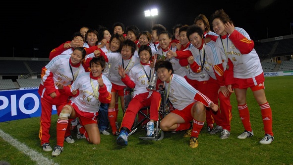 作为主帅马良行执教时期的主力中场,白莉莉是中国女足2006年亚洲杯冠军队的一员,但她在半决赛严重受伤,那场球成了她的谢幕之战。颁奖仪式上,队友们推着轮椅上的白莉莉,抱起冠军奖杯。合影中的她,保持了乐观的笑容。