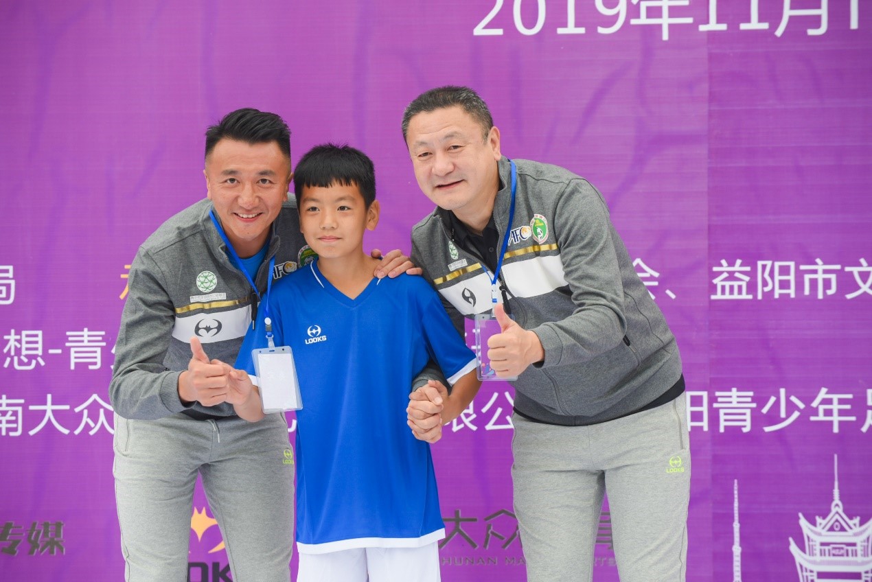 活动现场,马明宇和刘成还与益阳的足球青少年们深度互动,并与公益教练员们一起为益阳的足球少年们上了一堂公益足球课,踢了一场足球趣味赛,鼓励更多的小朋友参与足球运动,收获快乐。同时也在孩子们的心中埋下了一颗足球梦想的种子。