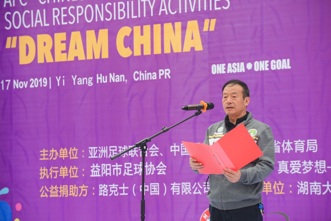 2019年11月17日,2019亚足联-中国足协“梦想中国”社会责任活动益阳站捐赠活动在湖南省益阳市第十四中学举行。本次活动由亚足联、中国足协以及湖南省体育局主办,湖南省足球协会、益阳市文旅广体局承办,由真爱梦想-青少年足球成长公益基金独家公益合作支持,路克士(中国)有限公司提供足球装备物资捐赠,同时活动还得到了益阳青少年足球发展公益基金等单位的大力支持。